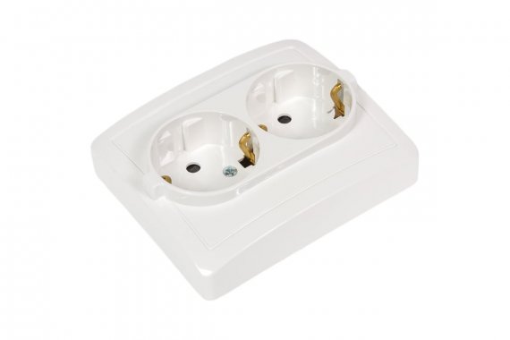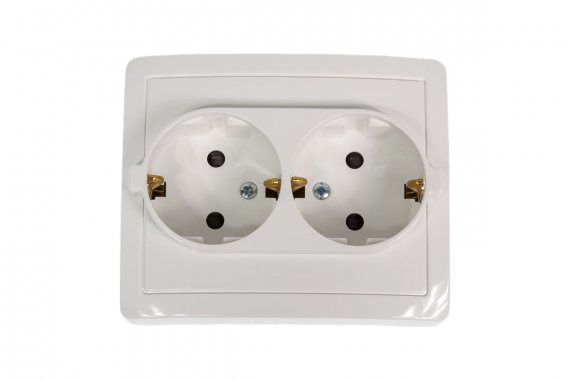 Розетка двойная моноблок со шторками Schuko 2x2Р+Е, 16A 250В~, белый, S15