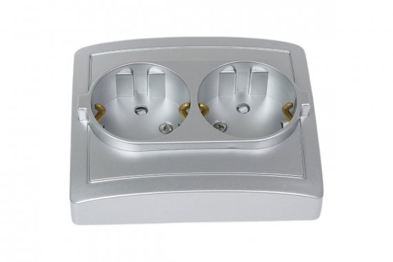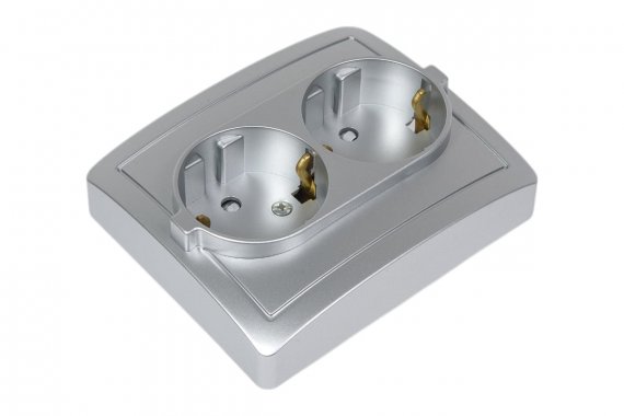Розетка двойная моноблок со шторками Schuko 2x2Р+Е, 16A 250В~, алюминий, S15