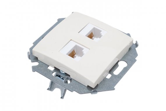 Розетка информационная 2xRJ45 Cat.5e UTP (AMP), сл.кость, S15