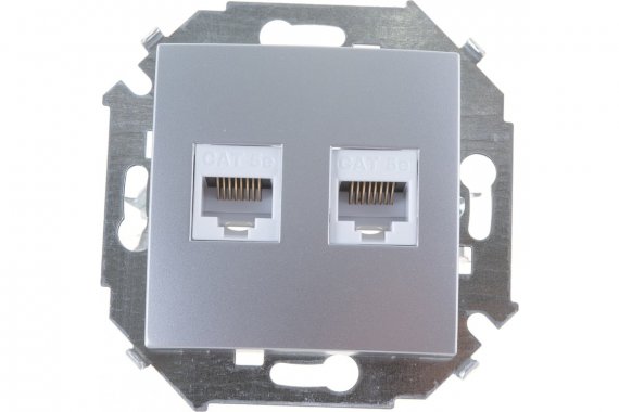 Розетка информационная 2xRJ45 Cat.5e UTP (AMP), алюминий, S15