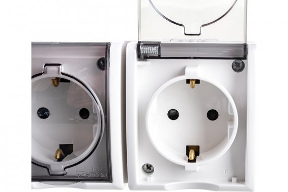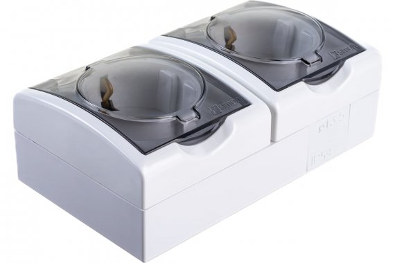 Розетка двойная IP54 с крышкой и шторками Schuko 2x2Р+Е, 16A 250В~, белый, S15A