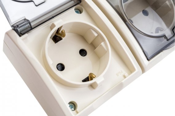 Simon 1594447-031 Розетка тройная IP54 с крышкой и шторками Schuko 3x2Р+Е, 16A 250В