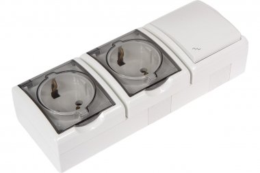 Блок IP54. Розетка двойная с крышкой Schuko 2x2Р+Е 16A + Переключатель 10AX 250В~, белый, S15A