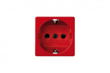 Розетка со шторками Schuko 2Р+Е, 16A 250В~ безвинт., красный, S27