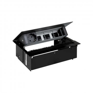 Врезной x4 розеточный блок, щетка, 1x2P+E, 3 пустых модуля, черный, S400