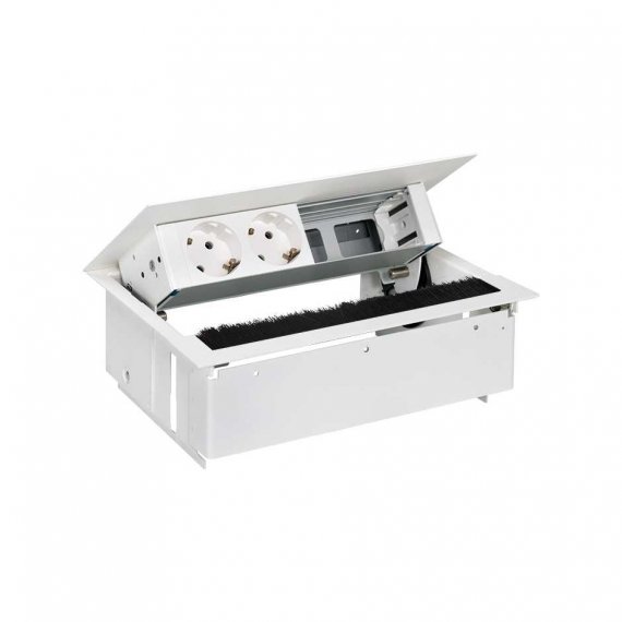Врезной x4 розеточный блок, щетка, 2x2P+E, 2 пустых модуля, белый, S400