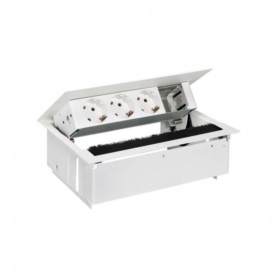 Врезной x4 розеточный блок, щетка, 3x2P+E, 1 пустой модуль, белый, S400