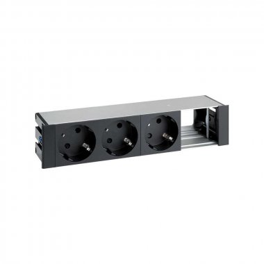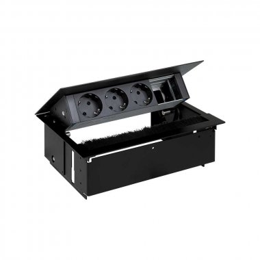Врезной x4 розеточный блок, щетка, 3x2P+E, 1 пустой модуль, черный, S400
