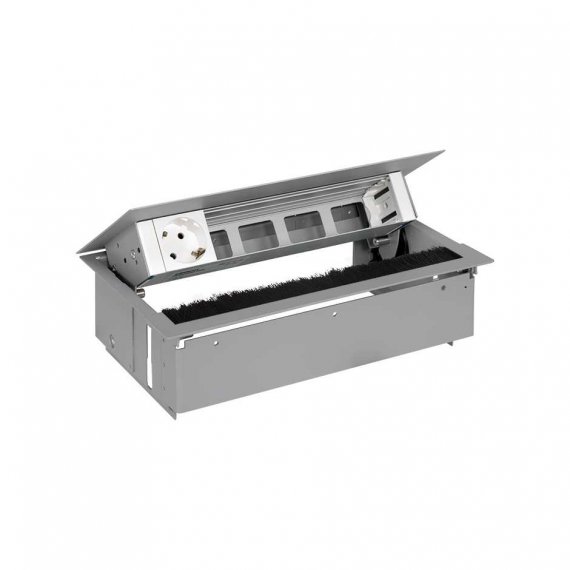 Врезной x5 розеточный блок, щетка, 1x2P+E, 4 пустых модуля, алюминий, S400