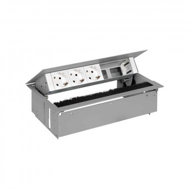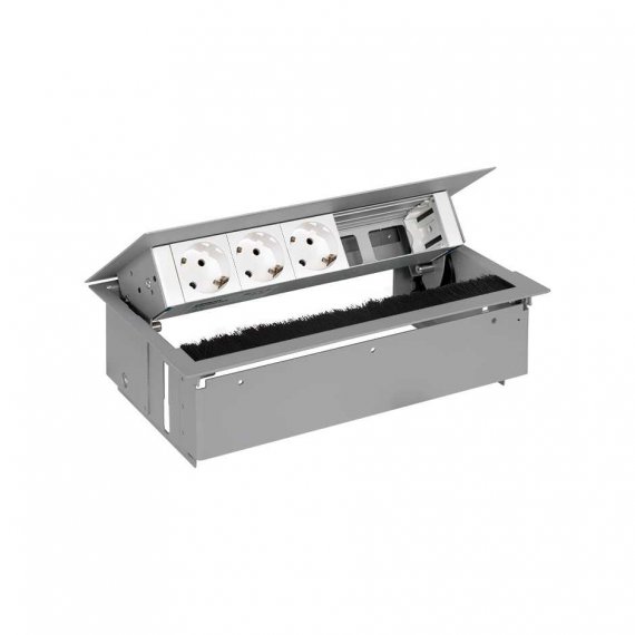 Врезной x5 розеточный блок, щетка, 3x2P+E, 2 пустых модуля, алюминий, S400