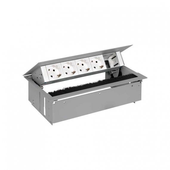 Врезной x5 розеточный блок, щетка, 4x2P+E, 1 пустой модуль, алюминий, S400