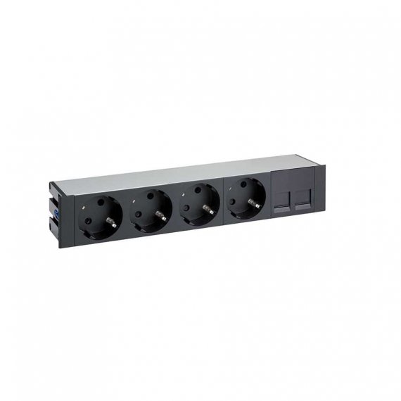 Врезной x5 розеточный блок, щетка, 4x2P+E, 2хRJ45, черный, S400