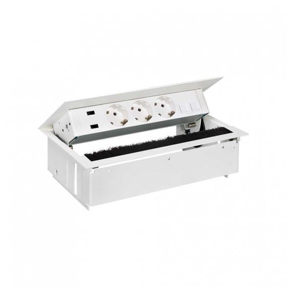 Врезной x5 розеточный блок, щетка, 3x2P+E, USB A+A з/у, 2xRJ45, белый, S400