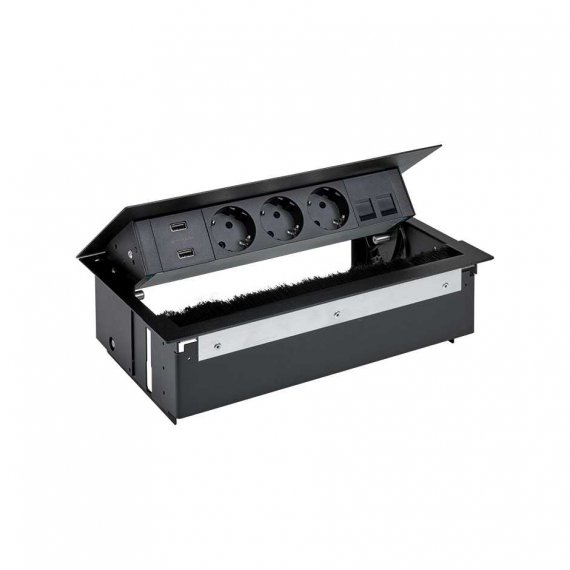 Врезной x5 розеточный блок, щетка, 3x2P+E, USB A+A з/у, 2xRJ45, черный, S400