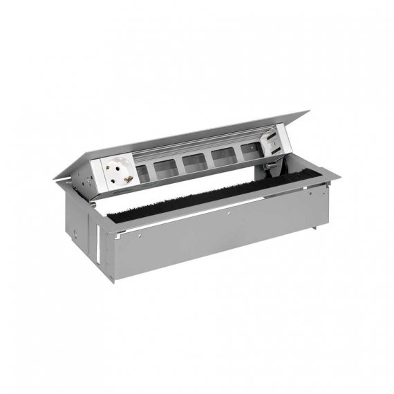 Врезной x6 розеточный блок, щетка, 1x2P+E, 5 пустых модулей, алюминий, S400