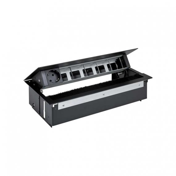 Врезной x6 розеточный блок, щетка, 1x2P+E, 5 пустых модулей, черный, S400