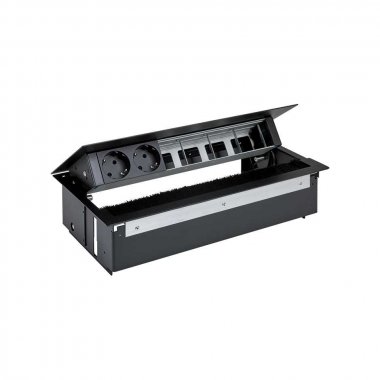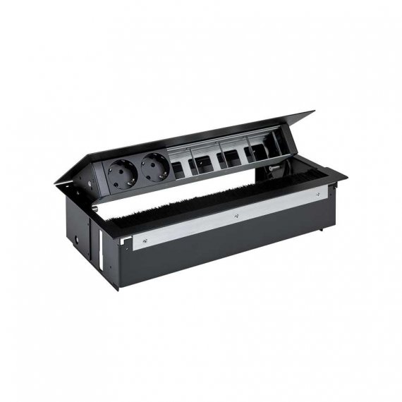 Врезной x6 розеточный блок, щетка, 2x2P+E, 4 пустых модуля, черный, S400