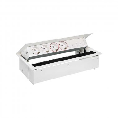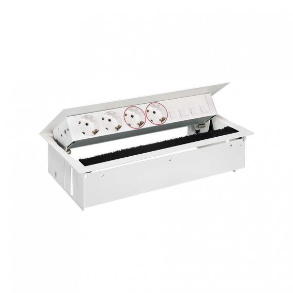 Врезной x6 розеточный блок, щетка, 2x2P+E, 2x2P+E UPS, 4хRJ45, белый, S400