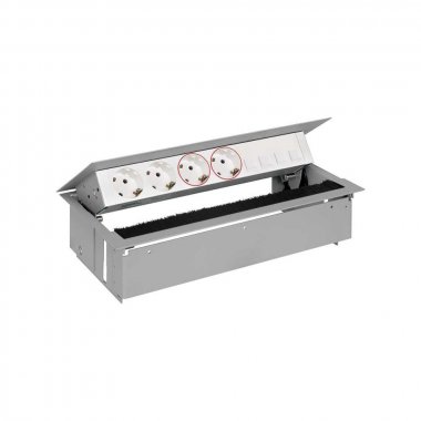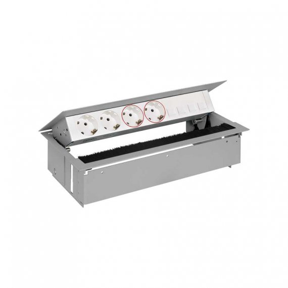 Врезной x6 розеточный блок, щетка, 2x2P+E, 2x2P+E UPS, 4хRJ45, алюминий, S400