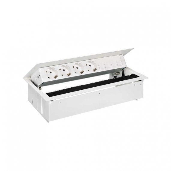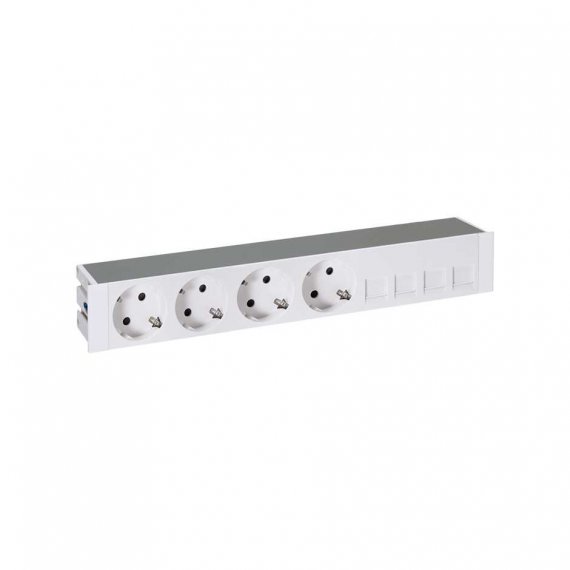 Врезной x6 розеточный блок, щетка, 4x2P+E, 4хRJ45, белый, S400
