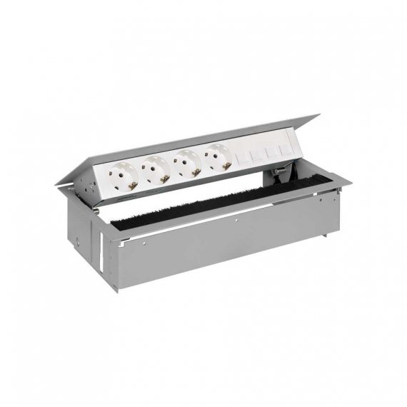 Врезной x6 розеточный блок, щетка, 4x2P+E, 4хRJ45, алюминий, S400