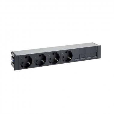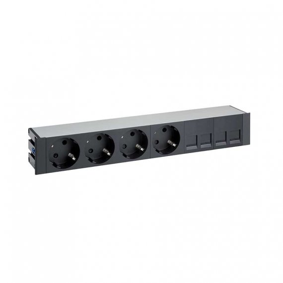 Врезной x6 розеточный блок, щетка, 4x2P+E, 4хRJ45, черный, S400