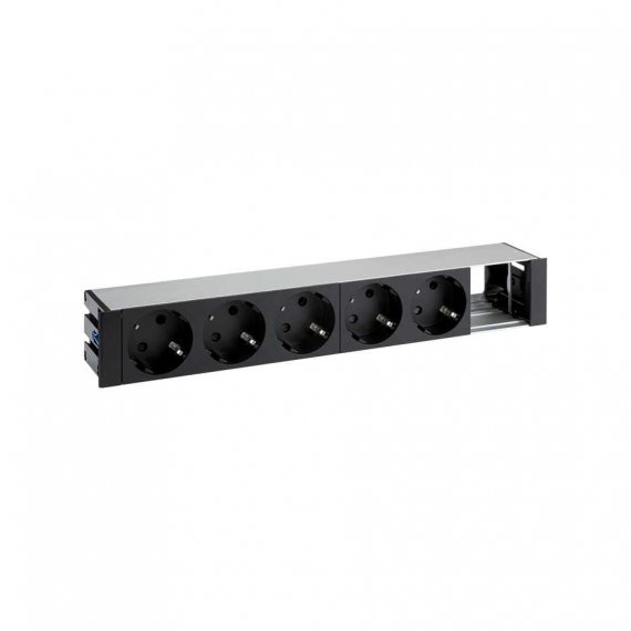 Врезной x6 розеточный блок, щетка, 5x2P+E, 1 пустой модуль, черный, S400