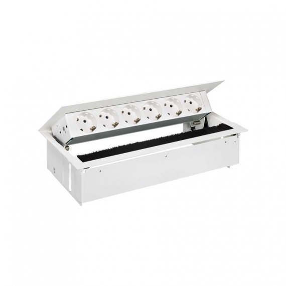 Врезной x6 розеточный блок, щетка, 6x2P+E, белый, S400