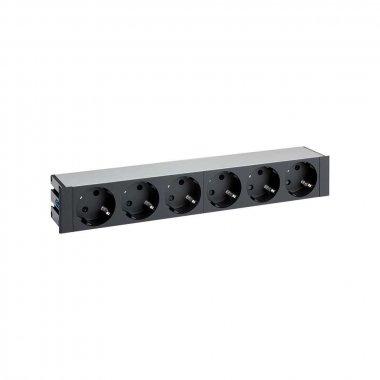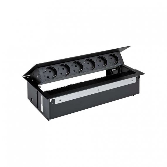Врезной x6 розеточный блок, щетка, 6x2P+E, черный, S400
