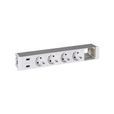 Simon 44624000-130 Врезной x6 розеточный блок, щетка, 4x2P+E, USB A+A з/у, 1 пустой модуль