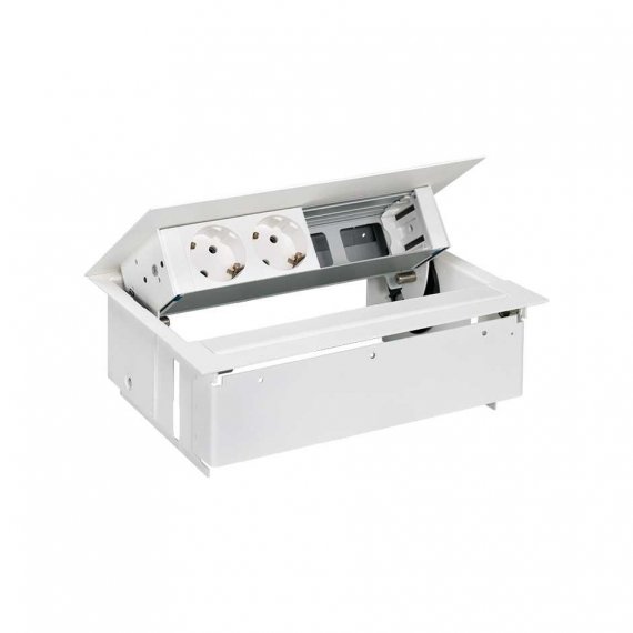 Врезной x4 розеточный блок, планка, 2x2P+E, 2 пустых модуля, белый, S400