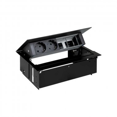Врезной x4 розеточный блок, планка, 2x2P+E, 2 пустых модуля, черный, S400