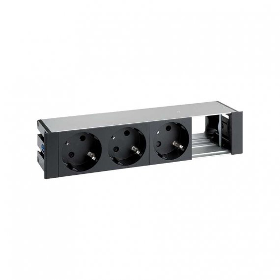 Врезной x4 розеточный блок, планка, 3x2P+E, 1 пустой модуль, черный, S400