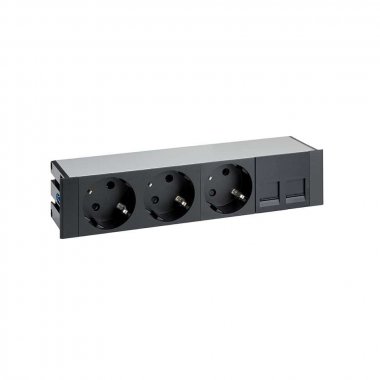 Врезной x4 розеточный блок, планка, 3x2P+E, 2xRJ45, черный, S400
