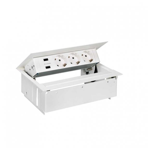 Врезной x4 розеточный блок, планка, 3x2P+E, USB A+A з/у, белый, S400