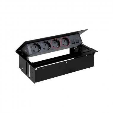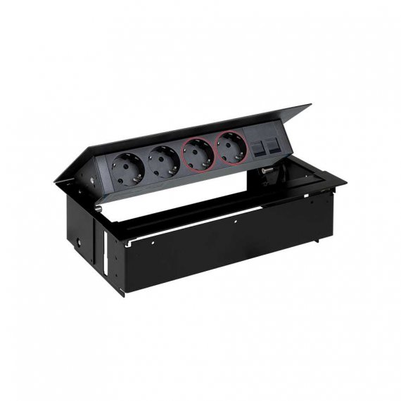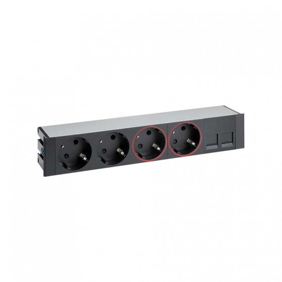 Врезной x5 розеточный блок, планка, 2x2P+E, 2x2P+E UPS, 2хRJ45, черный, S400