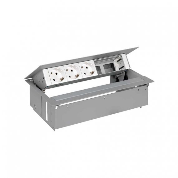 Врезной x5 розеточный блок, планка, 3x2P+E, 2 пустых модуля, алюминий, S400