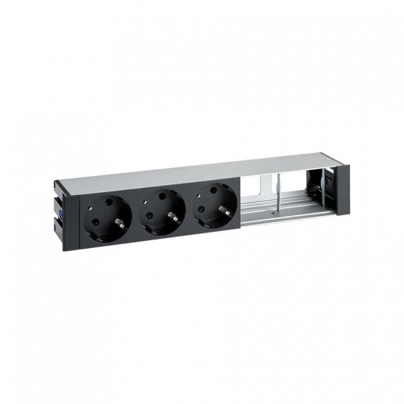 Врезной x5 розеточный блок, планка, 3x2P+E, 2 пустых модуля, черный, S400