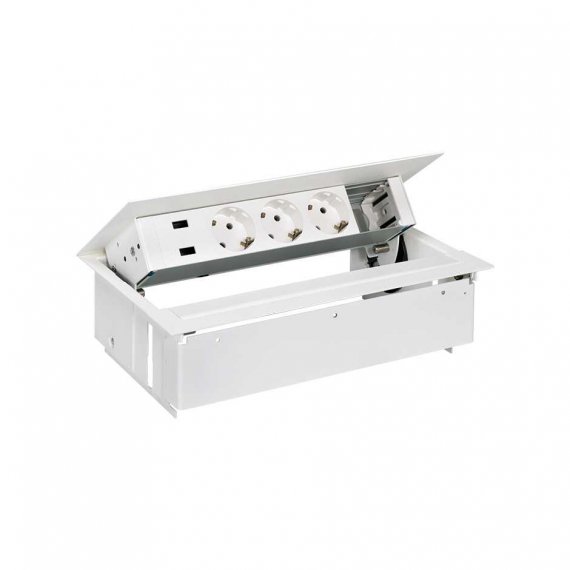 Врезной x5 розеточный блок, планка, 3x2P+E, USB A+A з/у, 1 пустой модуль, белый, S400