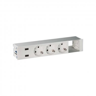 Врезной x5 розеточный блок, планка, 3x2P+E, USB A+A з/у, 1 пустой модуль, алюминий, S400