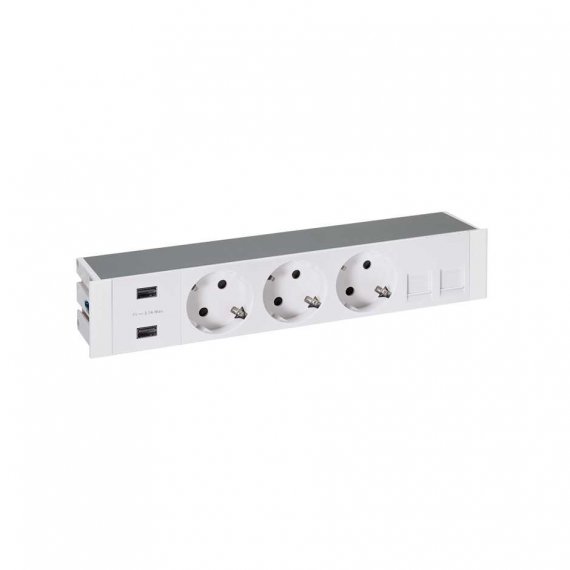 Врезной x5 розеточный блок, планка, 3x2P+E, USB A+A з/у, 2xRJ45, белый, S400
