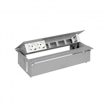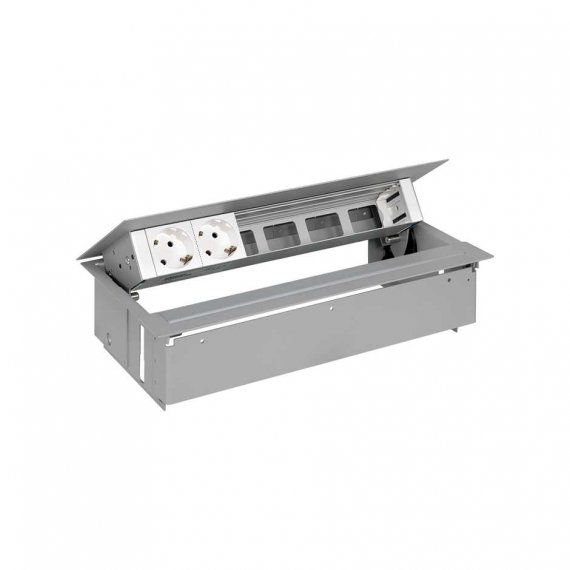 Врезной x6 розеточный блок, планка, 2x2P+E, 4 пустых модуля, алюминий, S400