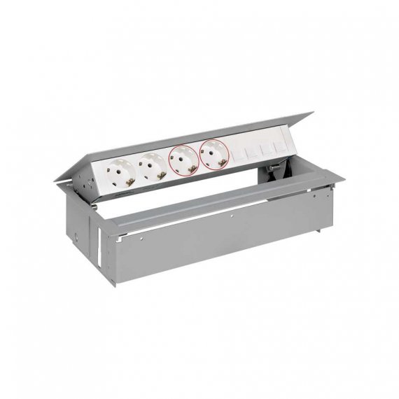 Врезной x6 розеточный блок, планка, 2x2P+E, 2x2P+E UPS, 4хRJ45, алюминий, S400