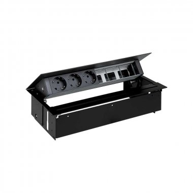 Врезной x6 розеточный блок, планка, 3x2P+E, 3 пустых модуля, черный, S400