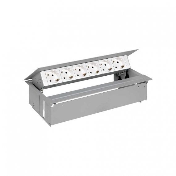 Врезной x6 розеточный блок, планка, 6x2P+E, алюминий, S400