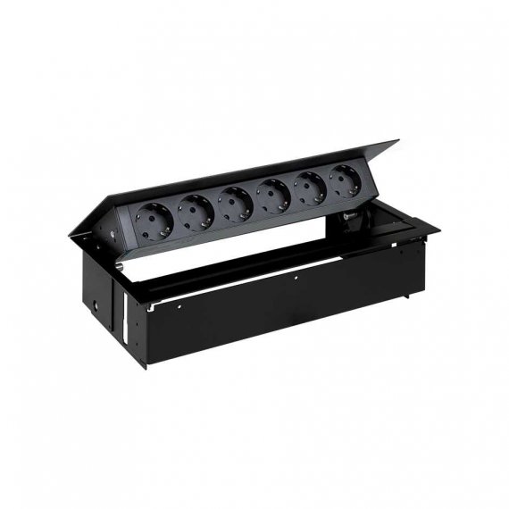 Врезной x6 розеточный блок, планка, 6x2P+E, черный, S400