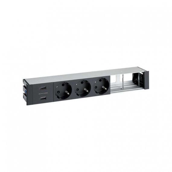 Врезной x6 розеточный блок, планка, 3x2P+E, USB A+A з/у, 2 пустых модуля, черный, S400