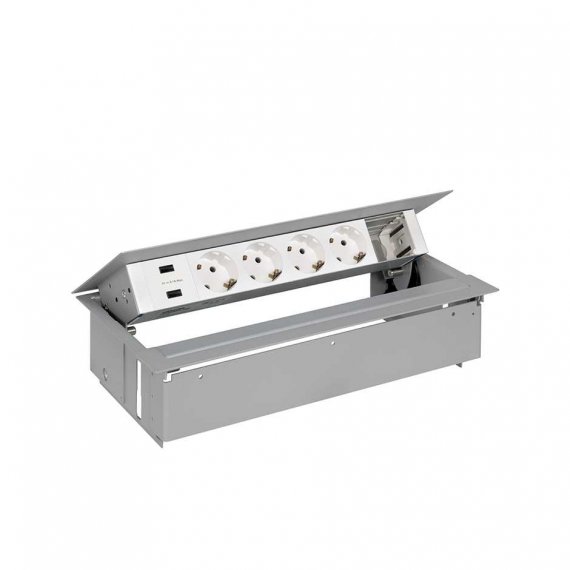 Врезной x6 розеточный блок, планка, 4x2P+E, USB A+A з/у, 1 пустой модуль, алюминий, S400