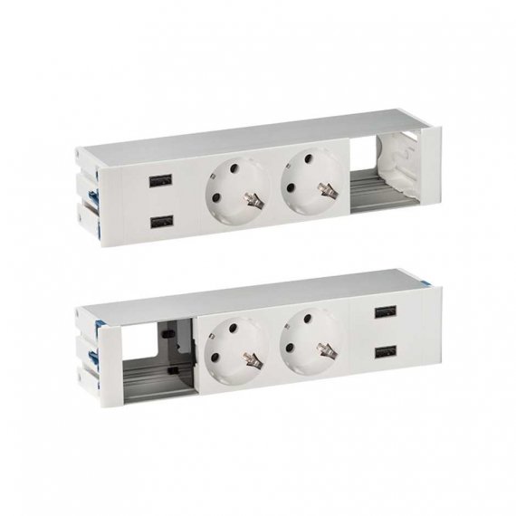 Двусторонний врезной x8 розеточный блок, щетка, 4x2P+E, 2xUSB A+A з/у, 2 пустых модуля, белый, S400