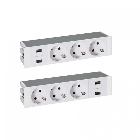 Simon 46423000-133 Двусторонний врезной x8 розеточный блок, щетка, 6x2P+E, 2xUSB A+A з/у